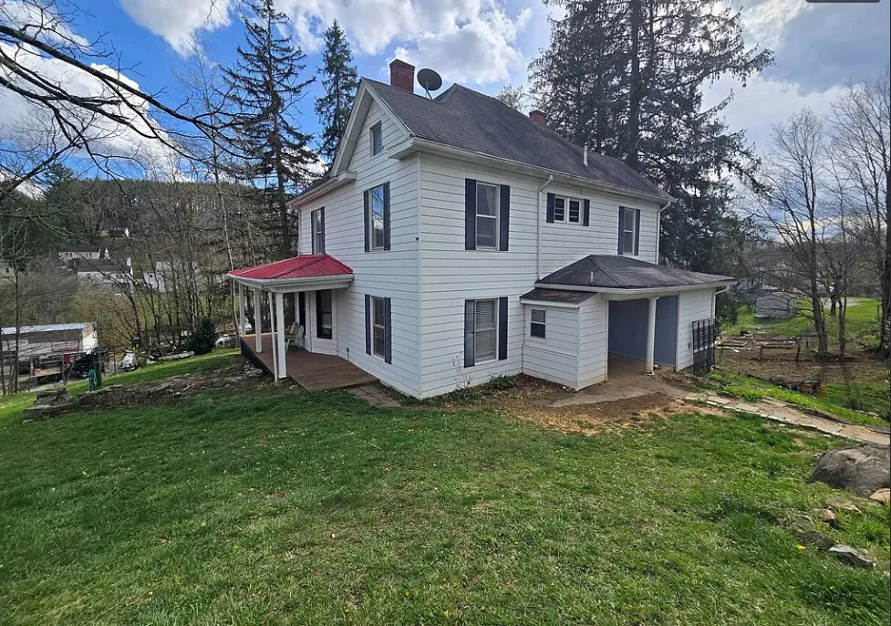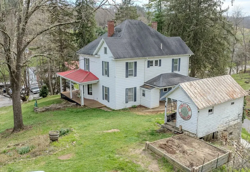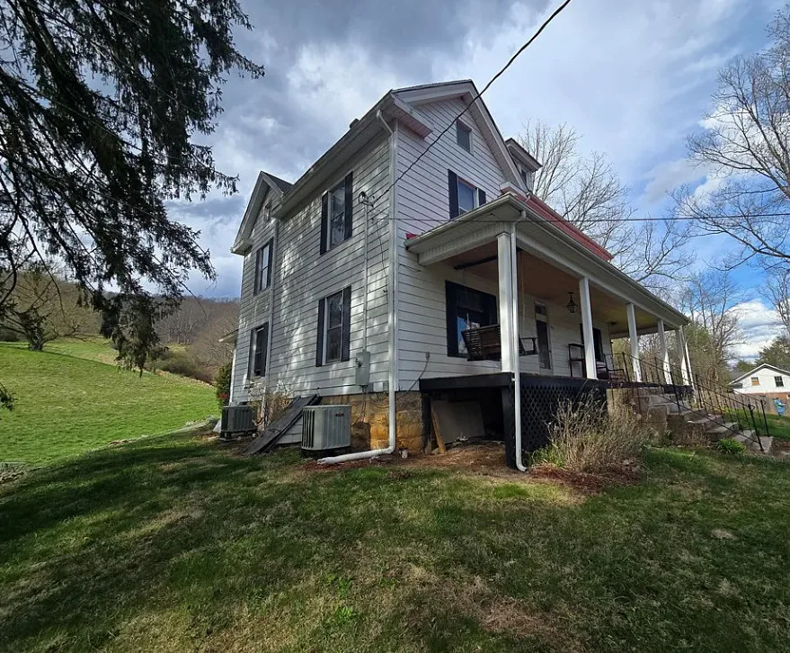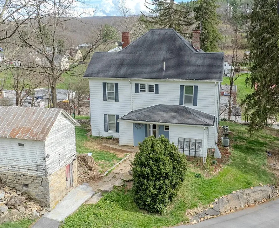 This house has some nice acreage! The house has a lot of potential! There is a guest cabin on the property. The house was built in 1905. It is located on 31.28 acres in Bluefield, Virginia. The house features a wrap around front porch, leaded glass, some wood floors, baseboards, crown moulding, pretty staircase and wainscoting. There is a detached guest cabin on the property. Four bedrooms, two bathrooms and 2,694 square feet. $295,000